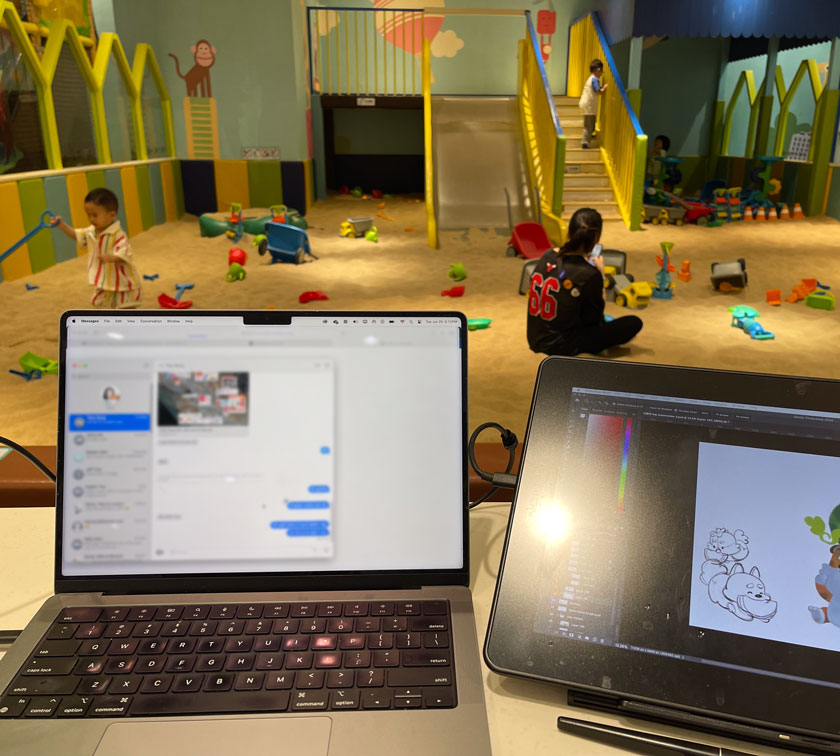 Working on the books was never easy with a newborn. We always put our baby first, which meant the books had to fit into whatever scraps of time we could find. Most nights we barely slept, and any quiet moment we had went into writing, designing, or planning. It often felt like we were scrambling just to keep things moving, but little by little, the work added up.
